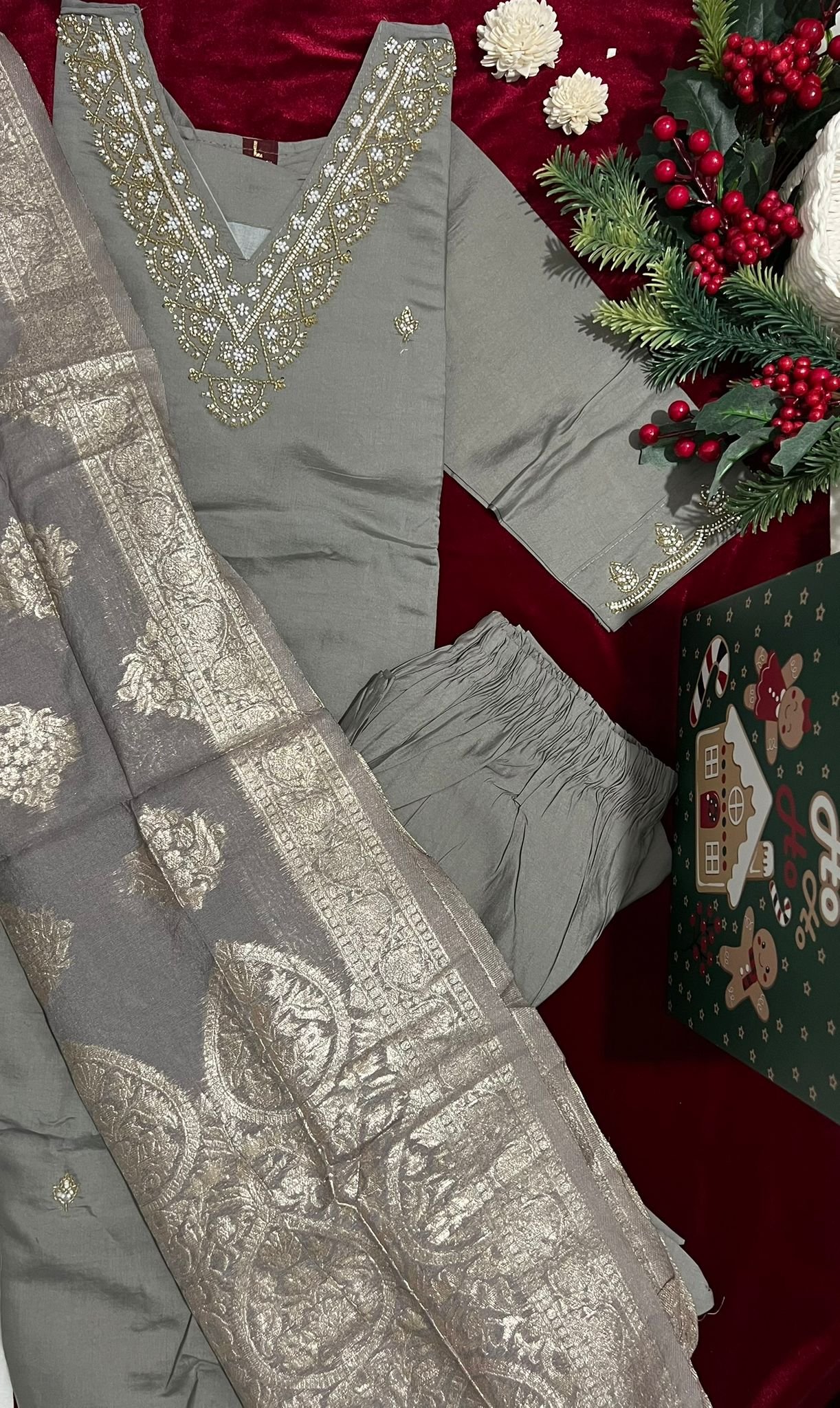 Embroidery Salwar 3 piece Set Pastel Shade Sandal