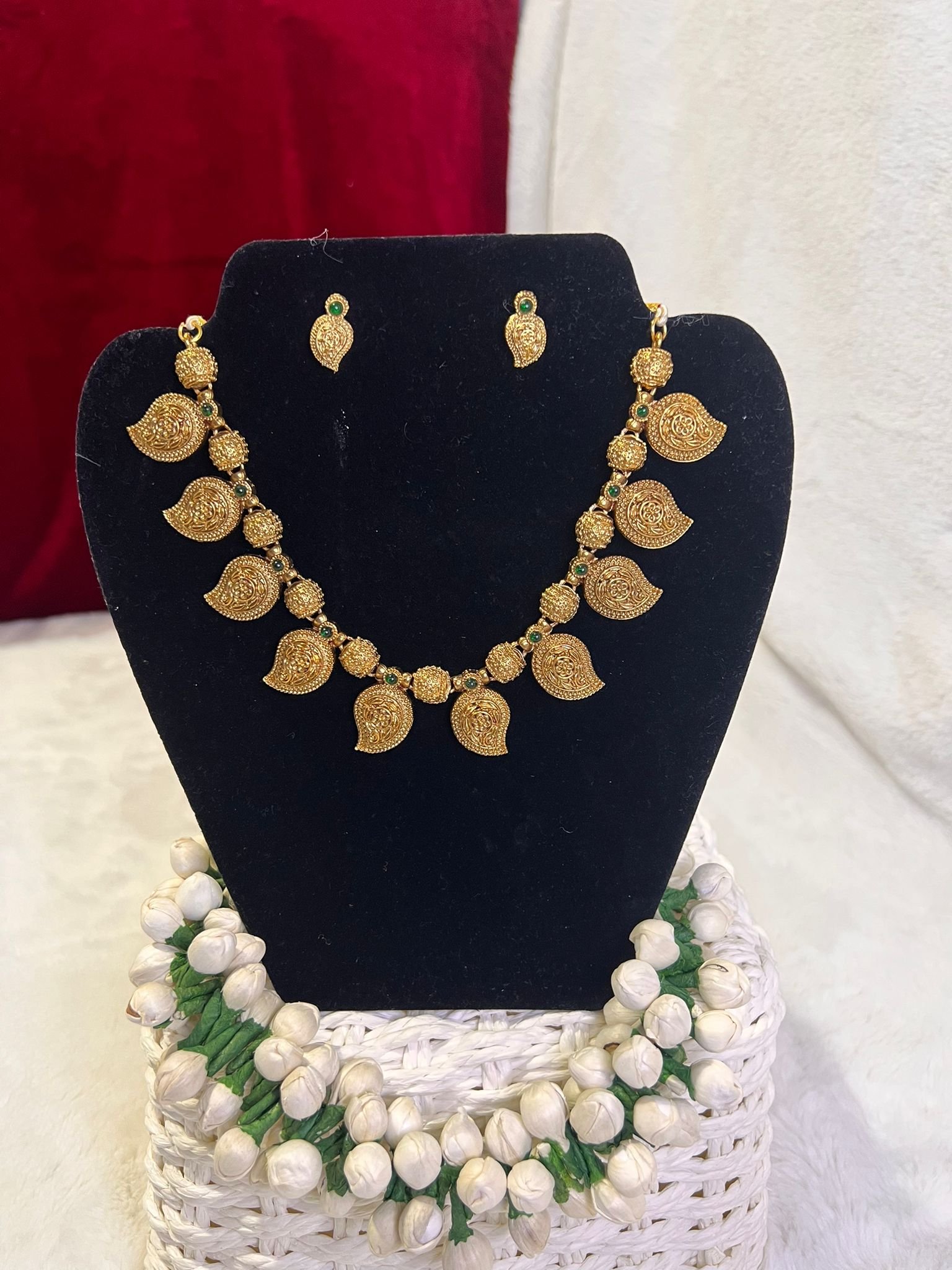 Mango Necklace Gold With Emerald Stone.