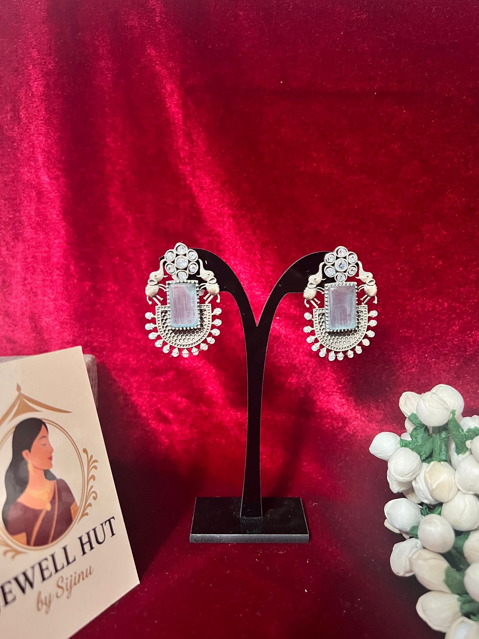 Oxidised Studs Blue Stone Elephant And Pearl.