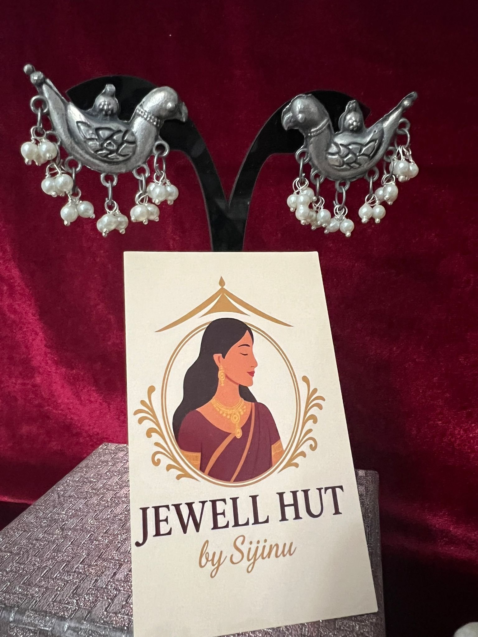Oxidised Studs Dove With Pearls. quantity