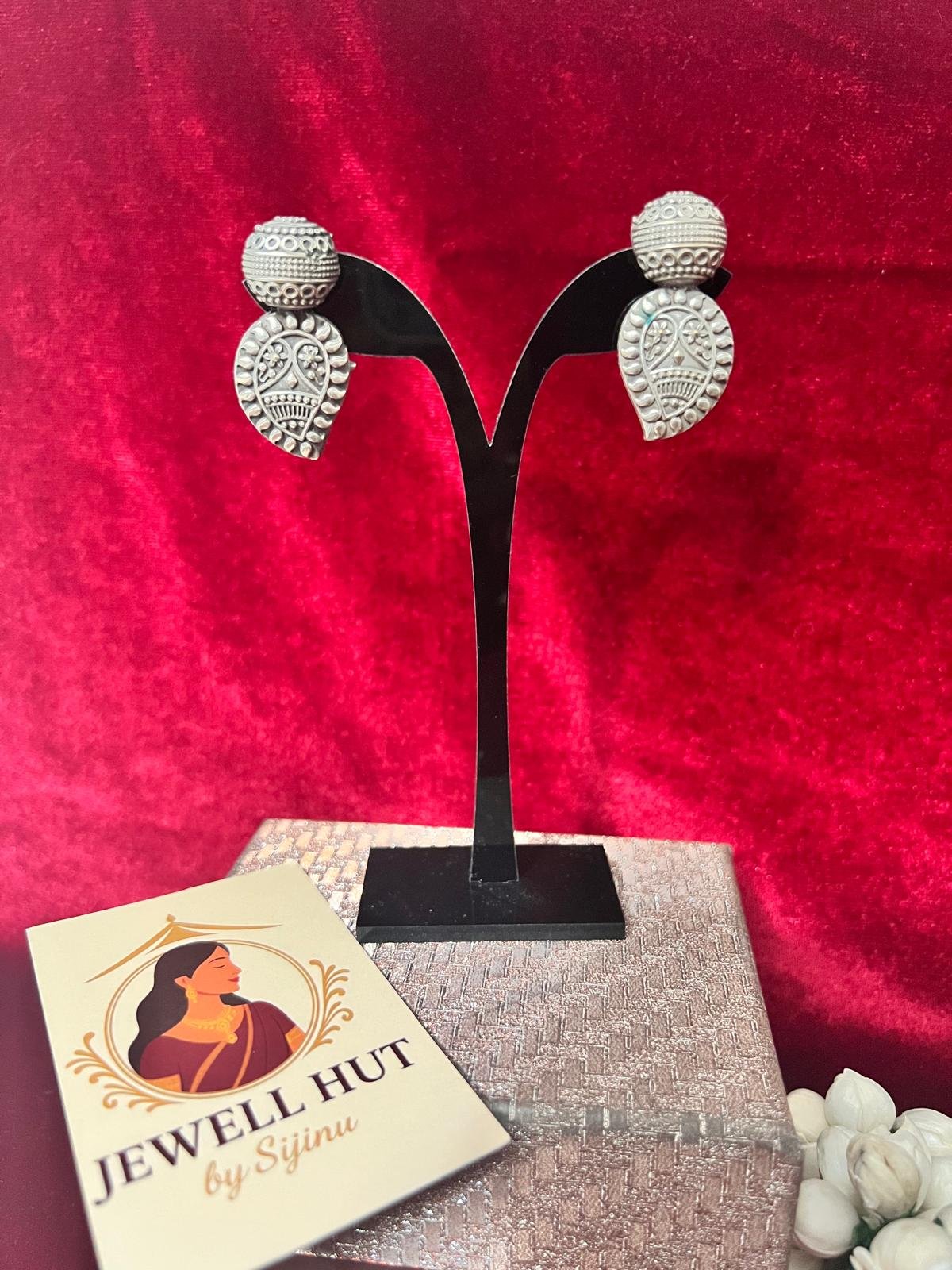 Oxidised Studs Blue Stone Elephant And Pearl.