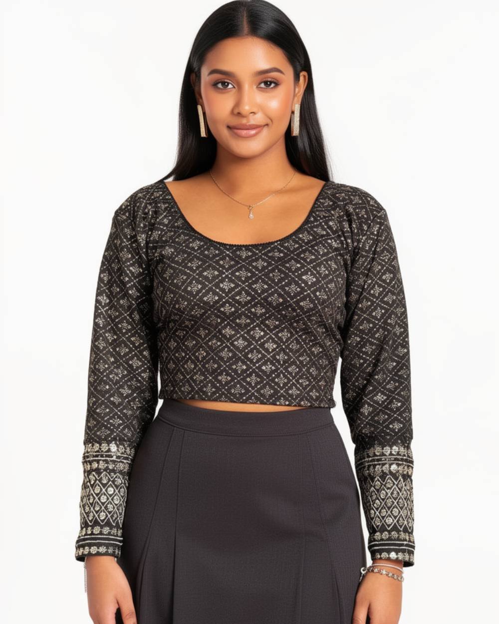 Stretchable Blouse With Full Sleeve Black